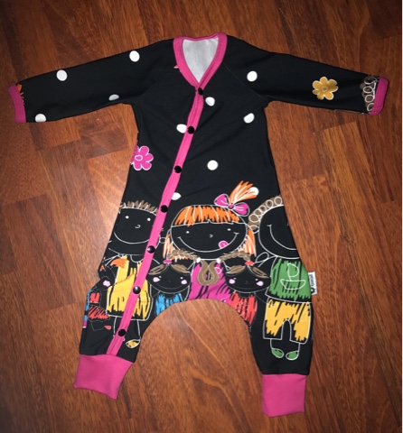 Jeg har gjort mine første forsøk på å sy body i babystørrelse. Jeg valgte mønster fra Hallonsmula, for de synes jeg er så søte. Det gikk kjempefint, og var ikke vanskelig i det hele tatt 😀😀